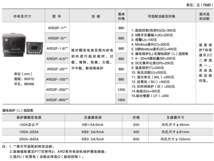 | ARD3T輔助電源 | AC/DC 110 / 220V或AC 380V,功耗≤15VA | ||