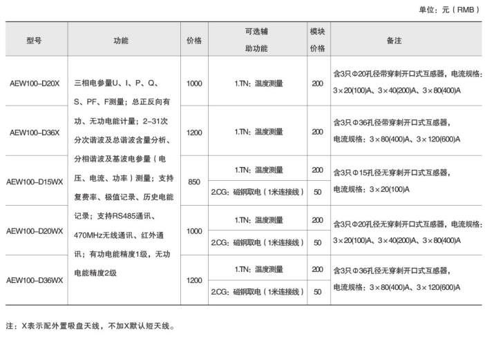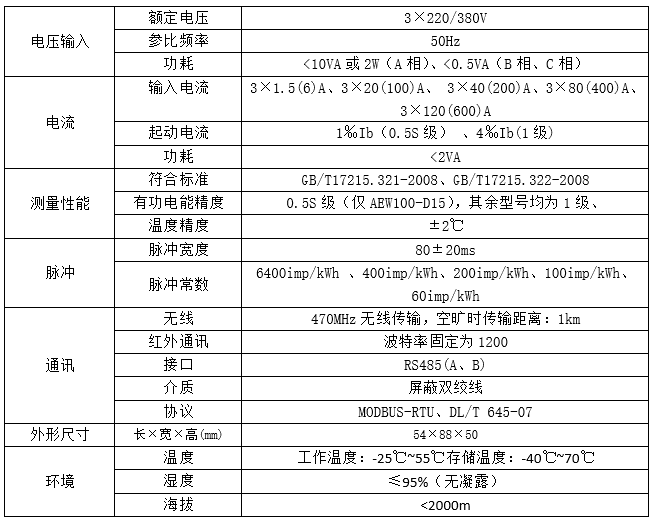 AEW100無線計量儀表主要用于計量低壓網絡的三相有功電能,具有RS485通訊和470MHz無線通訊功能,方便用戶進行用電監測、集抄和管理。