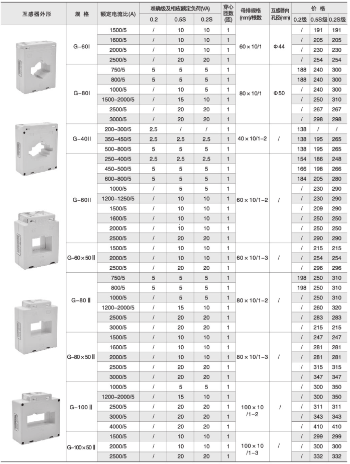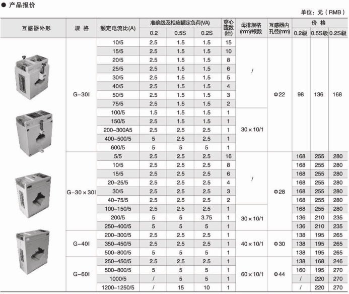 技術要求:額定電流比400A/5A;準確級0.2級;額定負荷2.5VA;穿心匝數1匝;內孔徑φ30;母排規格40mm×10mm 1根。
