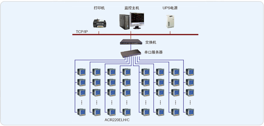 該機(jī)場配電室原采用GCS柜兩面,22路出線。原柜體安裝96型指針電流 表,要求實(shí)現(xiàn)各回路的電力參數(shù)實(shí)時(shí)監(jiān)測與功率累計(jì)量統(tǒng)計(jì)功能,并實(shí)現(xiàn)現(xiàn)場斷路器狀態(tài)的監(jiān)控值班室遠(yuǎn)程監(jiān)測。項(xiàng)目屬于改造項(xiàng)目,采用安科瑞公司ACR220EK網(wǎng)絡(luò)電力儀表于原配電柜基礎(chǔ)上更換老式指針表。